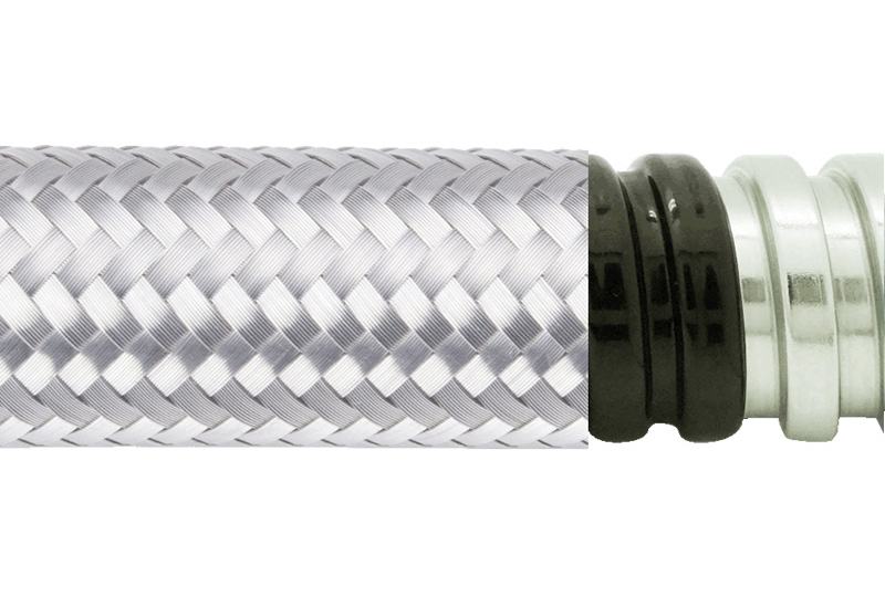電氣保護金屬軟管 (EMI 防護) - PES13PVCSB 系列, 由不銹鋼單勾軟管外加聚氯乙烯 (PVC) 塑料防水層及不銹鋼絲編織網構成, 是 EMI 防護系列產品中保護等級再提升的設計, 尺寸系統迎合歐洲市場普遍使用的規格。全系列產品具備優良的機械特性及防水防塵性, 編織層額外提升耐磨性, 在可能存有電磁干擾問題的環境中, 提供基本的 EMI 防護功能。聚氯乙烯塑料護套同時具有阻燃性, 本系列金屬軟管亦屬于低火險型的產品。全部材質符合 RoHS--危害物質禁用指令, 滿足環保產品要求。